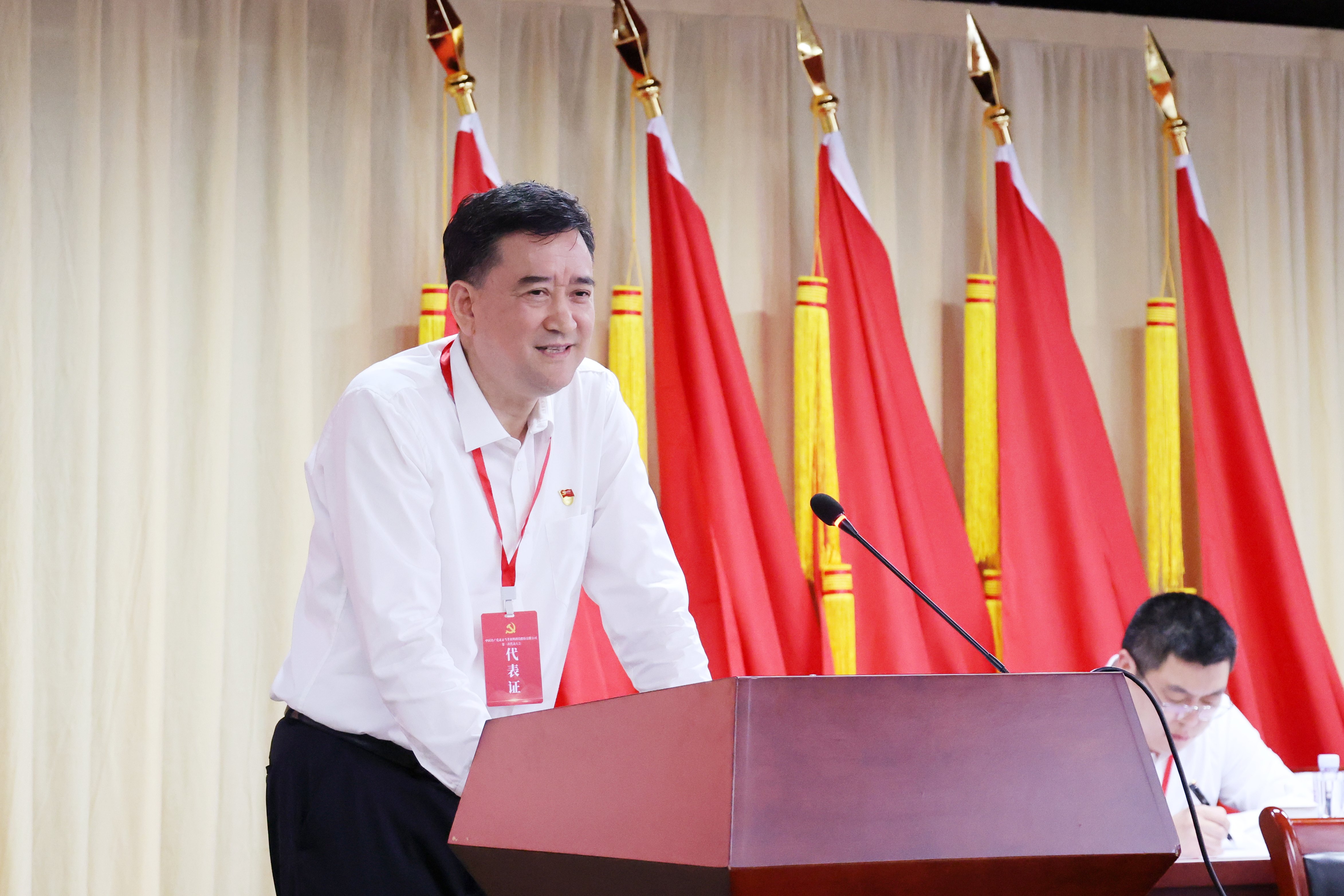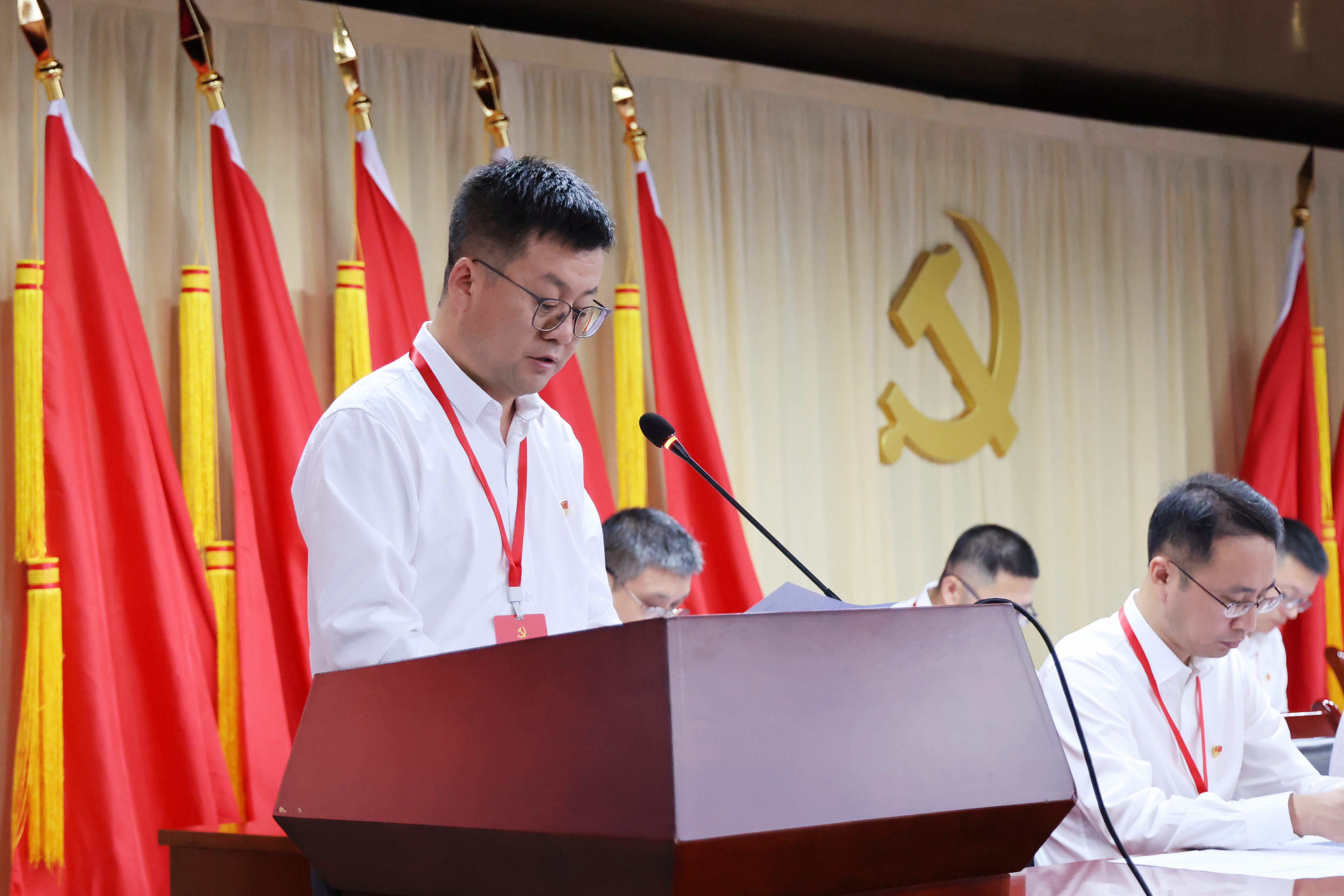 陳彥彬作題為《錨定目標篤行實干 逐夢毅行創(chuàng)建一流 為持續(xù)打造全球領先的創(chuàng)新型企業(yè)而努力奮斗》的黨委工作報告。