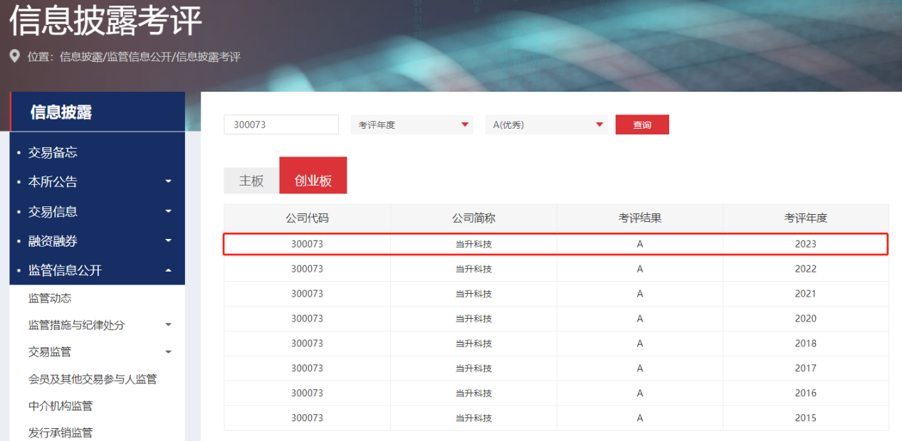 近日,深圳證券交易所在官方網站公布了深市上市公司2023-2024年度信息披露評價結果,當升科技再次榮獲最高評級“A”級(優秀),這是公司第8次獲此殊榮。本次參與考核的1327家深交所創業板上市公司中,有201家公司獲評“A”級,占創業板上市公司總數的15.15%;其中,北京轄區128家創業板上市公司中,有23家獲得“A”級,占比為17.97%。據悉,除當升科技外,4年來北京轄區僅有7家創業板上市公司信息披露評價連續獲得“A”級。