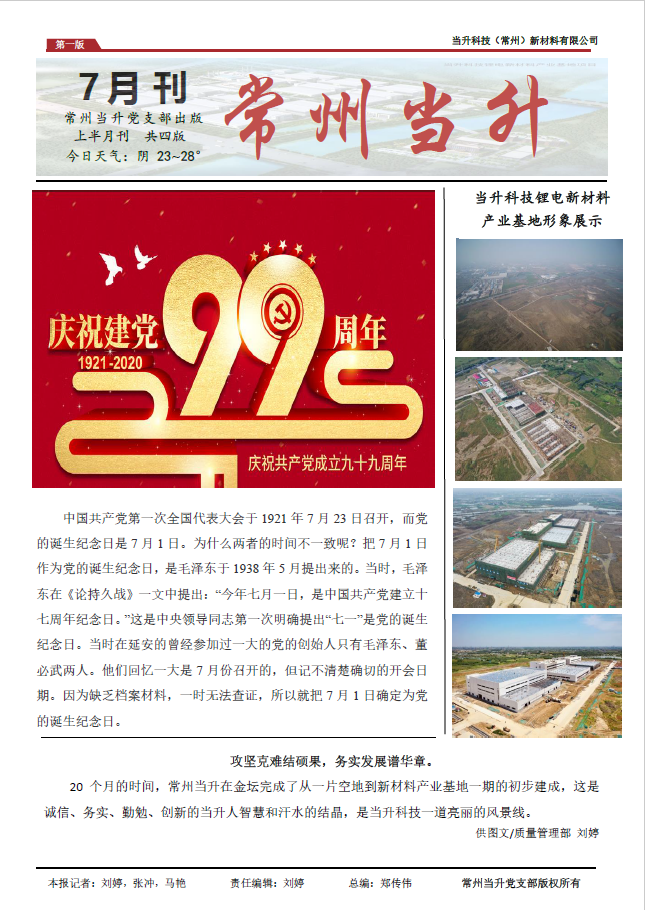 面對大家夜以繼日的辛勤付出,支部黨員劉婷、馬艷冒出了新想法?!霸蹅儐T工這么辛苦,支部怎么宣傳宣傳?”“要不,咱也弄個自己的內刊吧!”“這活兒可不小,上班估計沒時間?!薄澳窃劬拖掳喔桑苣└桑灰馨言郛斏木珰馍裾宫F出來,這都不算啥。”就這樣,你一言,我一語,在與支部書記細致溝通后,這事就定了!7月1日黨的生日這一天,支部正式推出半月刊《常州當升》,詳細展示了常州當升的各項工作進展、最新疫情防控政策、安全防護知識以及現場踴躍出的一系列感人事跡,為員工樹立榜樣,也打開了解常州當升的一扇窗。小小的內刊,承載了太多的感動與付出,劉婷、馬艷等黨員同志們白天忙工作,晚上加班撰稿、校稿、排版、審核、定稿、發稿,常常忙至深夜,他們從不懈怠,精益求精,只為將最美的當升人、最動人的當升事兒展現給大家,樹立好榜樣,傳遞正能量。公司總經理李建忠在調研常州當升后,感慨道“常州當升是一支戰無不勝、攻無不克的隊伍,體現了奮力拼搏的當升精神!所有當升人都應該向你們學習!”